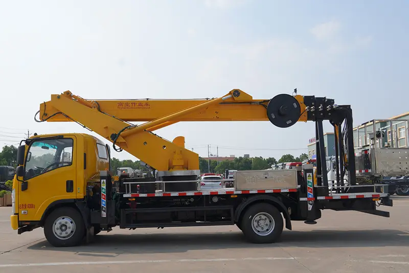 O maksymalnej wysokości roboczej 22 m i maksymalnym promieniu roboczym 11 m, wyposażony w trzysekcyjny synchroniczny wysięgnik teleskopowy sześciokątny, obsługujący ciągły obrót wieży w zakresie ± 360° bez martwych punktów, pełne pokrycie zakresu roboczego. Platforma wykorzystuje elektrohydrauliczne sterowanie proporcjonalne wykrywające obciążenie, bezstopniową regulację prędkości, płynną i szybką pracę bez drgań; montowana z tyłu platforma robocza ze schodkowymi schodkami, wbudowane oświetlenie umożliwiające wygodną pracę w nocy, w pełni spełniająca różnorodne potrzeby w zakresie operacji lotniczych.