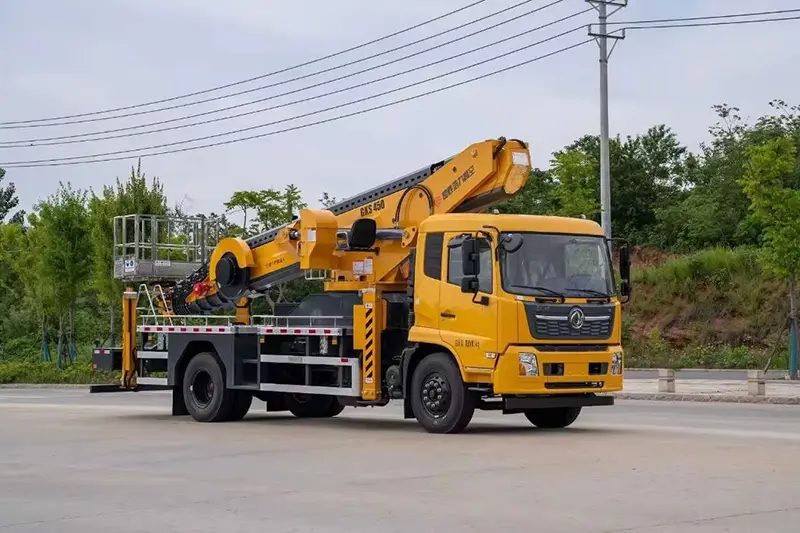 Wózek z platformą roboczą o wysokości 45 m to wytrzymały i wydajny pojazd do pracy na dużych wysokościach, przeznaczony do budownictwa inżynieryjnego na dużą skalę, konserwacji na bardzo dużych wysokościach, naprawy obiektów komunalnych, budowy elektrowni elektrycznych i ratownictwa awaryjnego. Dzięki zastosowaniu prawdziwego, wytrzymałego podwozia Dongfeng 4*2, połączonego z silnikiem spalinowym Euro 6 i profesjonalną przegubową teleskopową konstrukcją podnoszącą, przełamuje ograniczenia wysokości konwencjonalnych podnośników koszowych, zapewniając maksymalną wysokość roboczą wynoszącą 45 metrów, szeroki zakres działania i dużą stabilność. Obsługuje dostosowywanie zarówno pojazdów z kierownicą po lewej stronie (LHD), jak i pojazdów z kierownicą po prawej stronie (RHD), dostosowując się do przepisów ruchu drogowego i zwyczajów użytkowania w różnych krajach i regionach, co czyni go podstawowym wyposażeniem dla dużych zespołów inżynieryjnych i zespołów operacyjnych pracujących na dużych wysokościach na całym świecie.