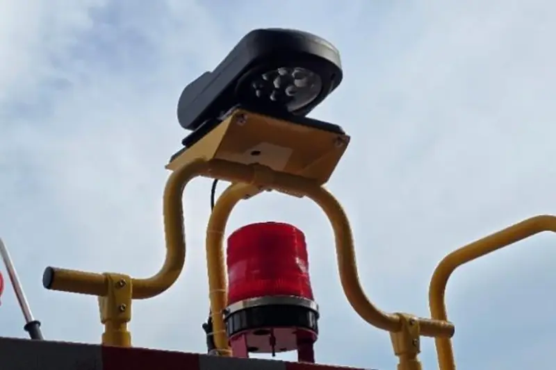 W przedniej części dachu kabiny zwykle znajduje się długi rząd świateł ostrzegawczych.