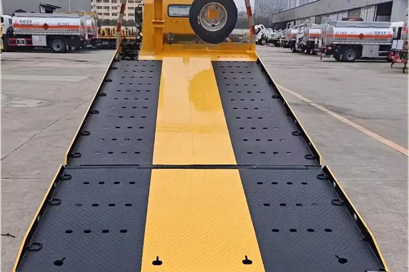 Jedna platforma holownicza Dwie wysokowydajne platformy: Przyjmuje profesjonalną konstrukcję platformy z jedną platformą, dwiema platformami, o wymiarach całkowitych 5600 × 2400 mm, wykonaną z jednorazowo formowanej tłoczonej płyty szachulcowej o grubości 4 mm, antypoślizgowej i nośnej. Może przewozić jeden 4-tonowy pojazd uszkodzony na platformie i ciągnąć drugi z tyłu, co znacznie poprawia efektywność akcji ratowniczych i transportu, dostosowując się do różnych scenariuszy ratownictwa miejskiego i drogowego.